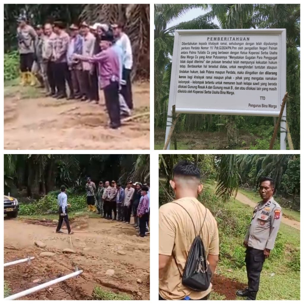 Informasi yang awak media ini terima bahwa dalam pemasangan plank tersebut adanya pihak Polsek Pancung Soal yang ikut serta…..! pertanyaanya apakah pihak polsek tidak mengetahui isi putusan perkara tersebut, apakah seorang penegak hukum tidak mengetahui hukum…..waduh bisa bahaya negara ini jika penegak hukum tidak paham hukum.
